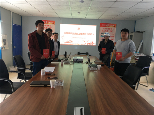 1月20日,第五直管部黨支部第三黨小組在羅平地質公園科普館項目召開會議,集中學習了《中國共產黨支部工作條例(試行)》。會議由直管部黨支部書記劉彭組織,直管部副經理楊文波、第三黨小組成員、直管部入黨積極分子參加學習。