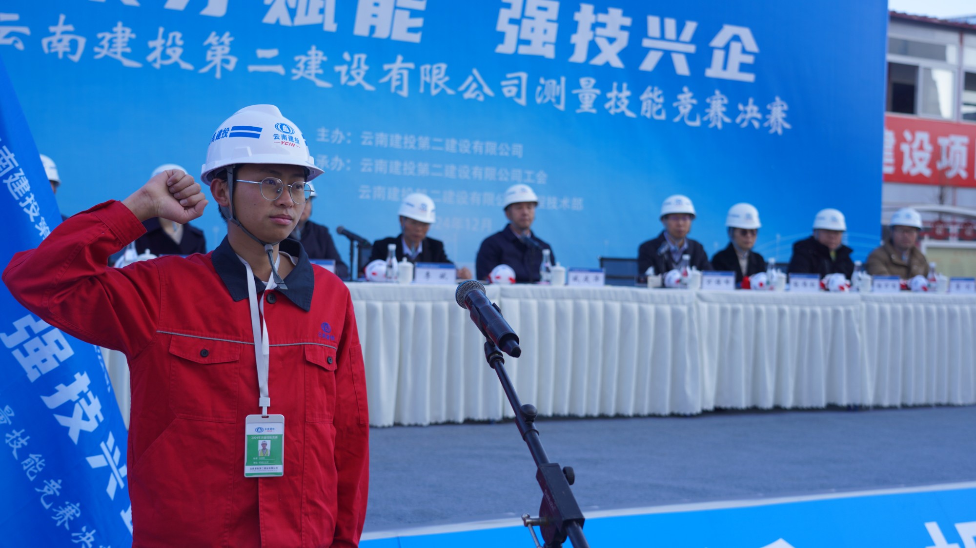 12月30日上午,公司2024年“聚才賦能 強技興企”測量技能競賽在昆明市醫(yī)科大學第一附屬醫(yī)院呈貢醫(yī)院項目部隆重開幕。公司黨委委員、董事、副總經(jīng)理(主持工作)臧慶澤,黨委委員、工會主席、副總經(jīng)理李斌,昆明冶金高等專科學校測繪學院副院長萬保峰教授,學院基地主任張偉紅教授,學院自動化變形監(jiān)測中心主任楊萬樞副教授,學院測繪與地理信息技術(shù)教研室主任黎劍副教授出席開幕式。公司總工程師陳強主持開幕式。